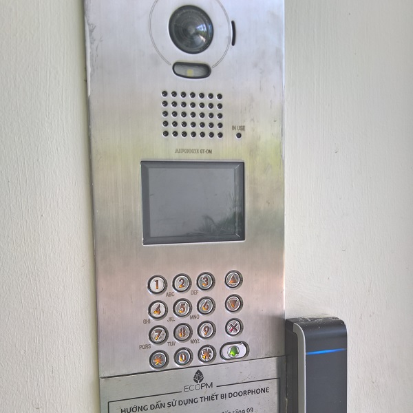 intercom 指大樓一樓的大門旁的對講機,也可指在捷運或其他地方用來跟管理人員溝通的設備